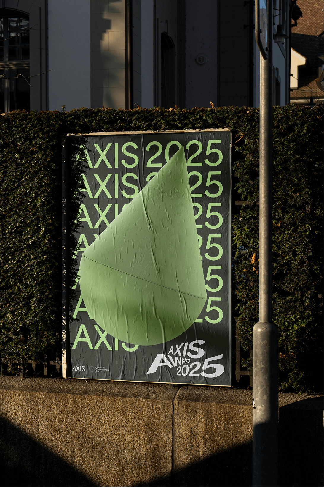 I began by first simplifying the master logo mark introduced in 2024—removing the ‘2024’ and aligning everything to the baseline. The mark directly reflects the trophy’s unique ‘A’ letterform but remains subtle enough to sit neatly in the corner of collateral, locked up with the Comms Council logo. Axis now have a clean, consistent master logo to use year-round—helping to build awareness and brand equity into the future.